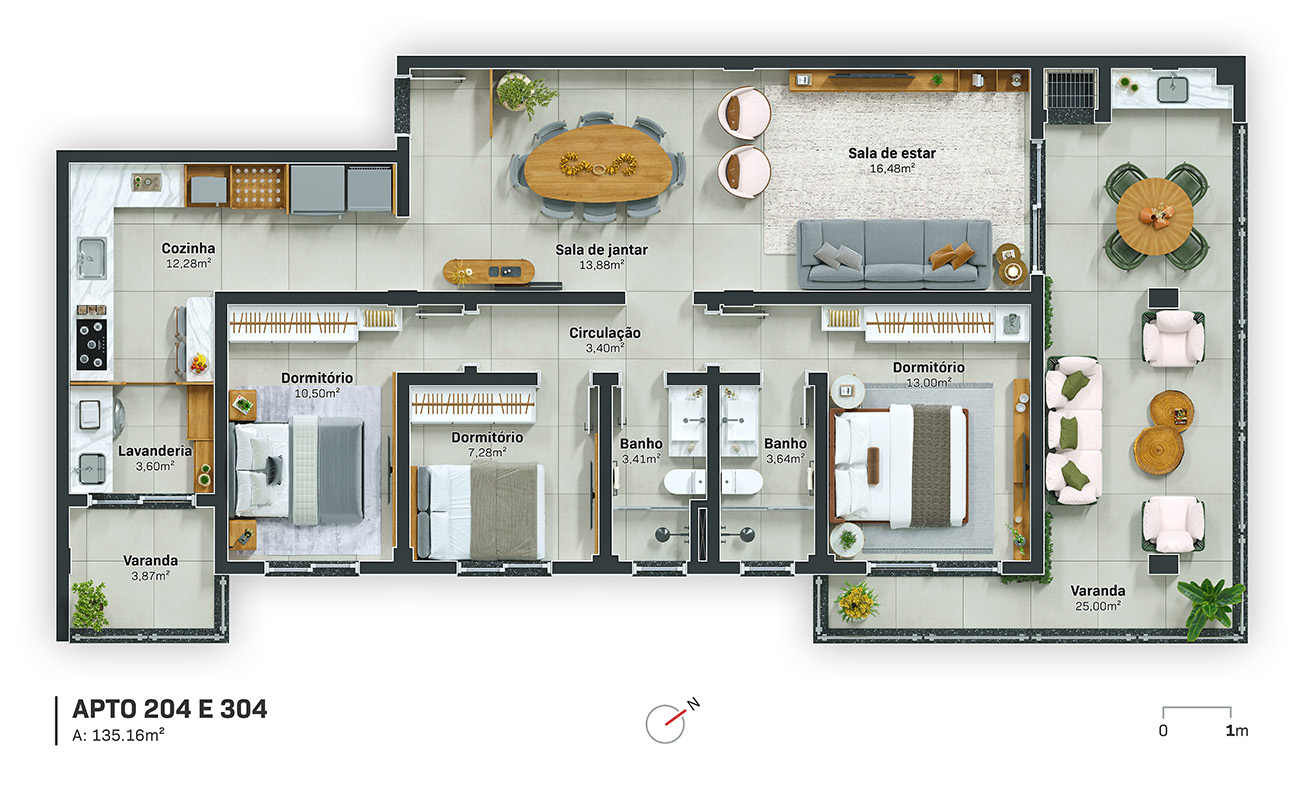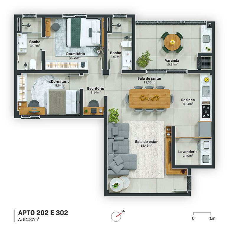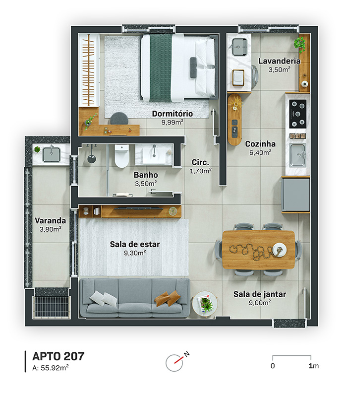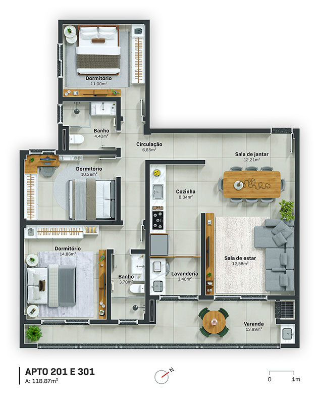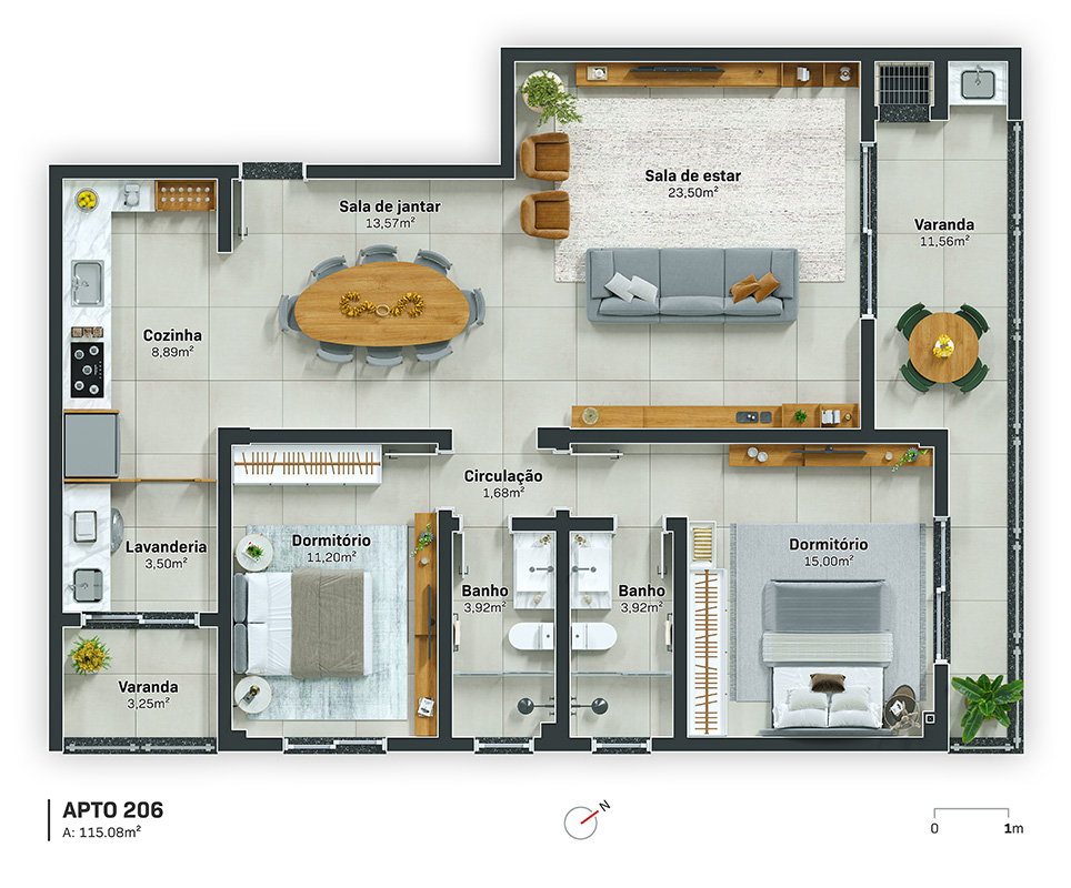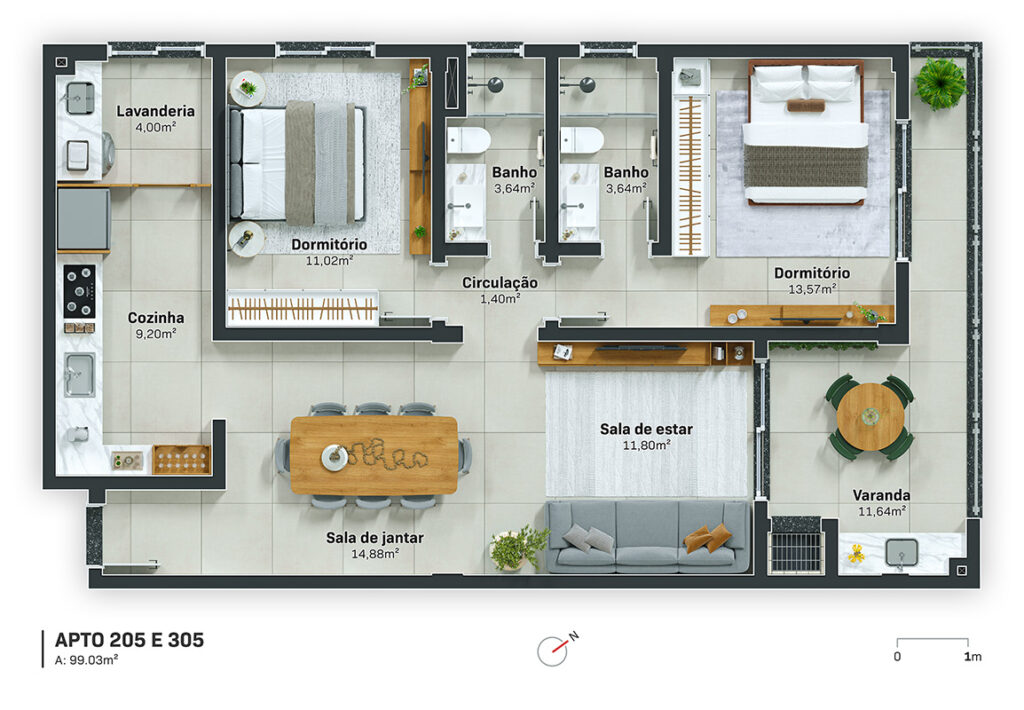 Tipologias Flexíveis: Opções de 1, 2 ou 3 dormitórios, atendendo desde jovens profissionais até famílias completas.