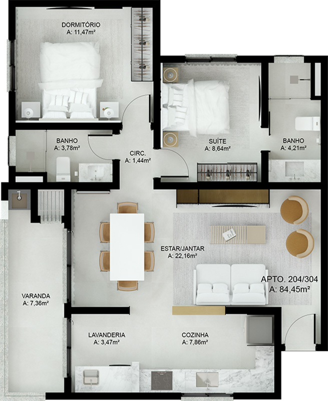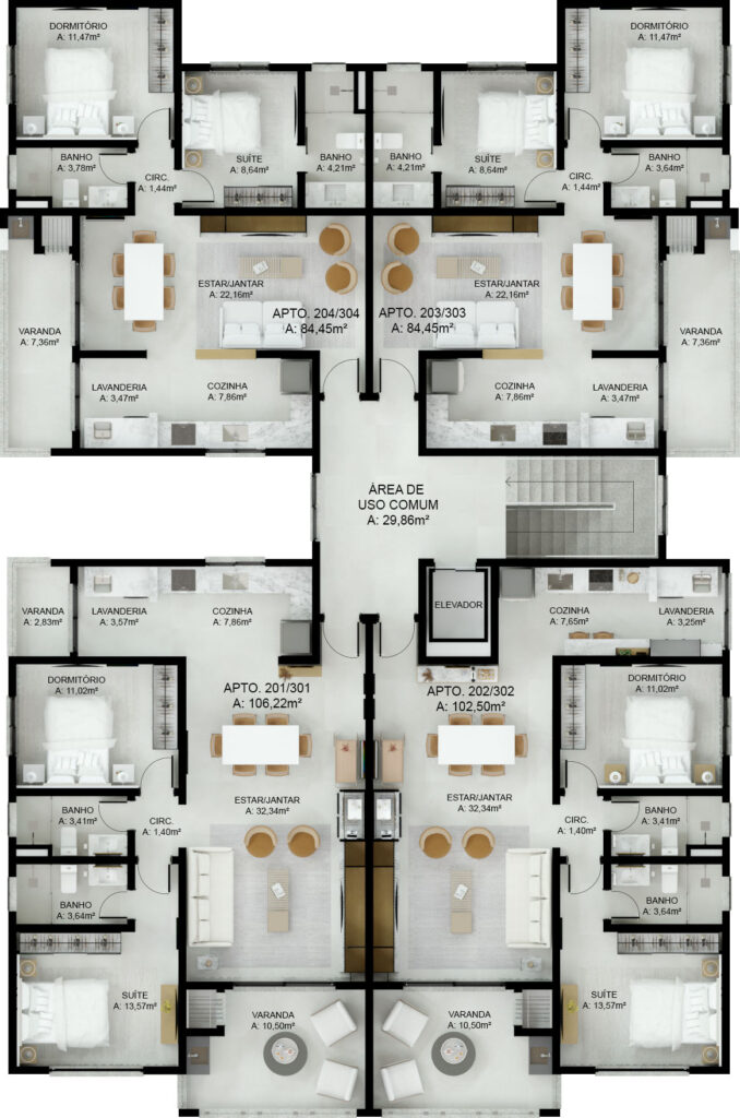 Cada apartamento no Edifício Stuttgart foi cuidadosamente projetado para oferecer o máximo de conforto, funcionalidade e bem-estar. As plantas inteligentes otimizam cada metro quadrado, criando ambientes integrados e perfeitos para receber amigos e viver momentos inesquecíveis em família.